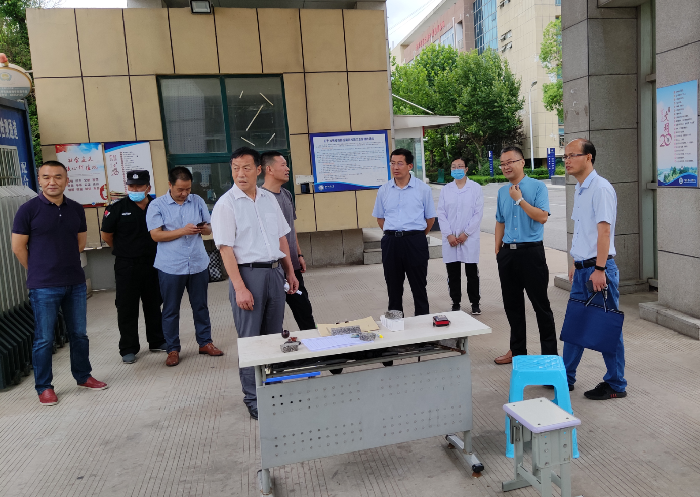 检查组巡查了南北校区校园,重点查看防疫、防汛物资储备情况、教学区的防疫布置情况以及教师、教室、宿舍等配置情况,对检查过程中发现的问题和安全隐患,进行现场办公,提出整改要求。在随后召开的座谈会上,听取了相关部门关于疫情防控、防汛工作的应急处置、宣传教育和应急值守等相关制度执行情况以及秋季开学相关准备工作的汇报,就疫情防控、防汛和秋季开学准备等相关工作进行了安排部署。