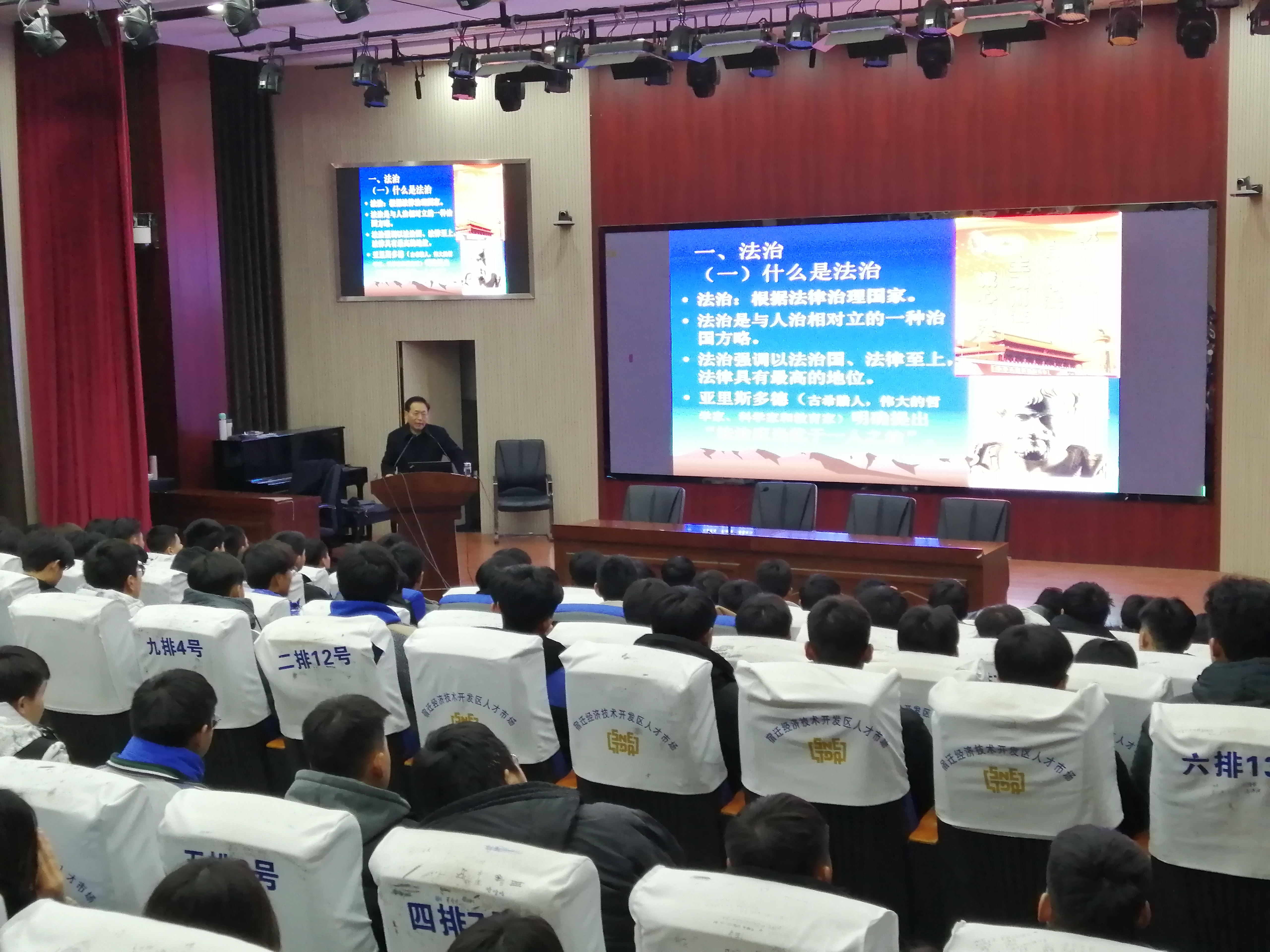 为进一步普及法律知识,引导学生树立法治观念,培养学生的自我保护意识,12月28日下午,我院邀请市教育局高教处处长、政策法规处负责人周长东到校开展法治与普法教育知识讲座。