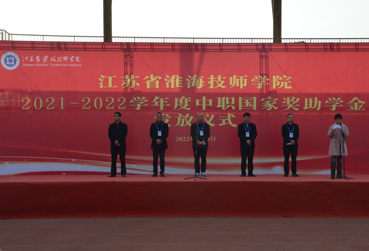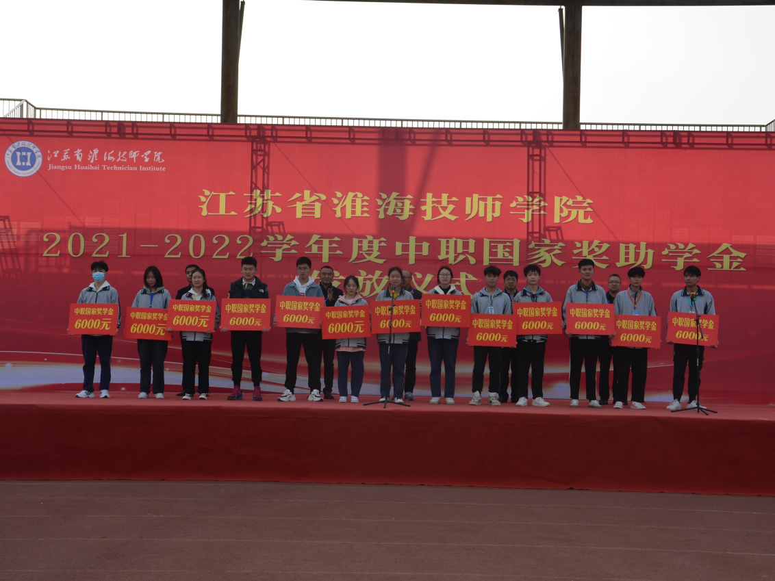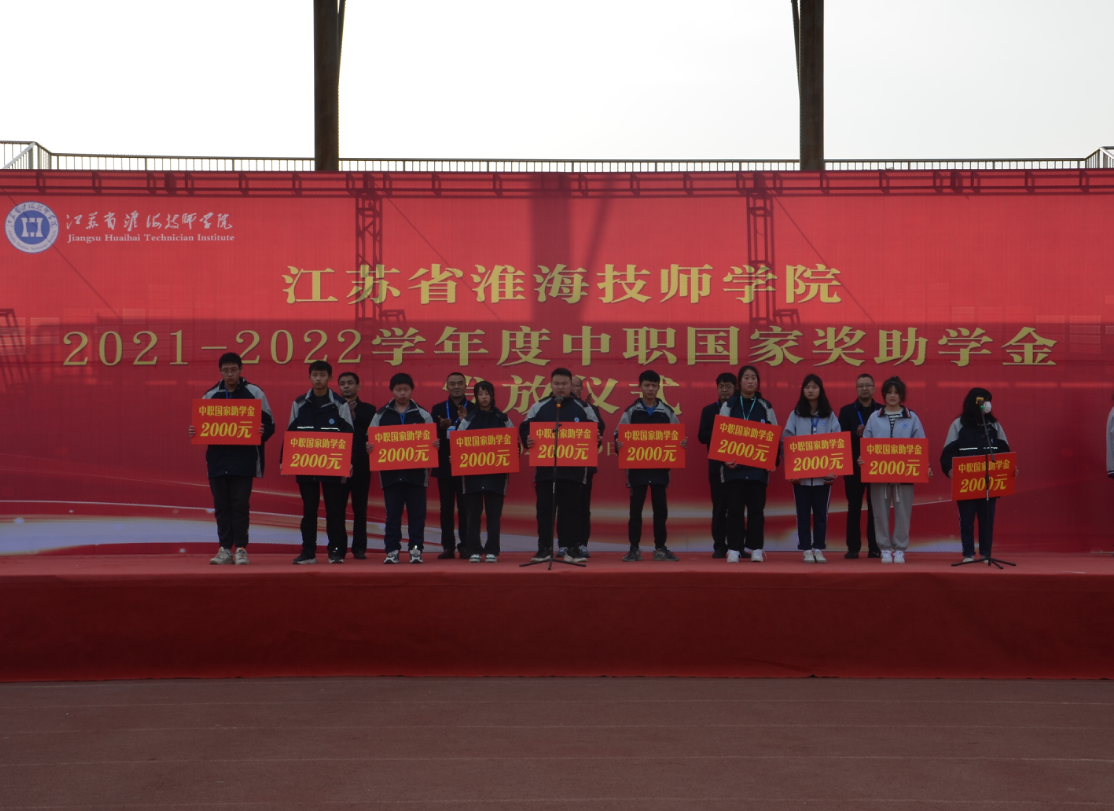 仪式上,胡方军解读了国家奖学金、助学金政策及学院遴选发放流程,并宣读了《江苏省淮海技师学院获得2021-2022学年度中职国家奖学金、助学金学生名单》,其中获得中职国家奖学金13人、助学金505人。参会院领导分别为获奖学生颁发国家奖学金每人6000元、国家助学金每人2000元。