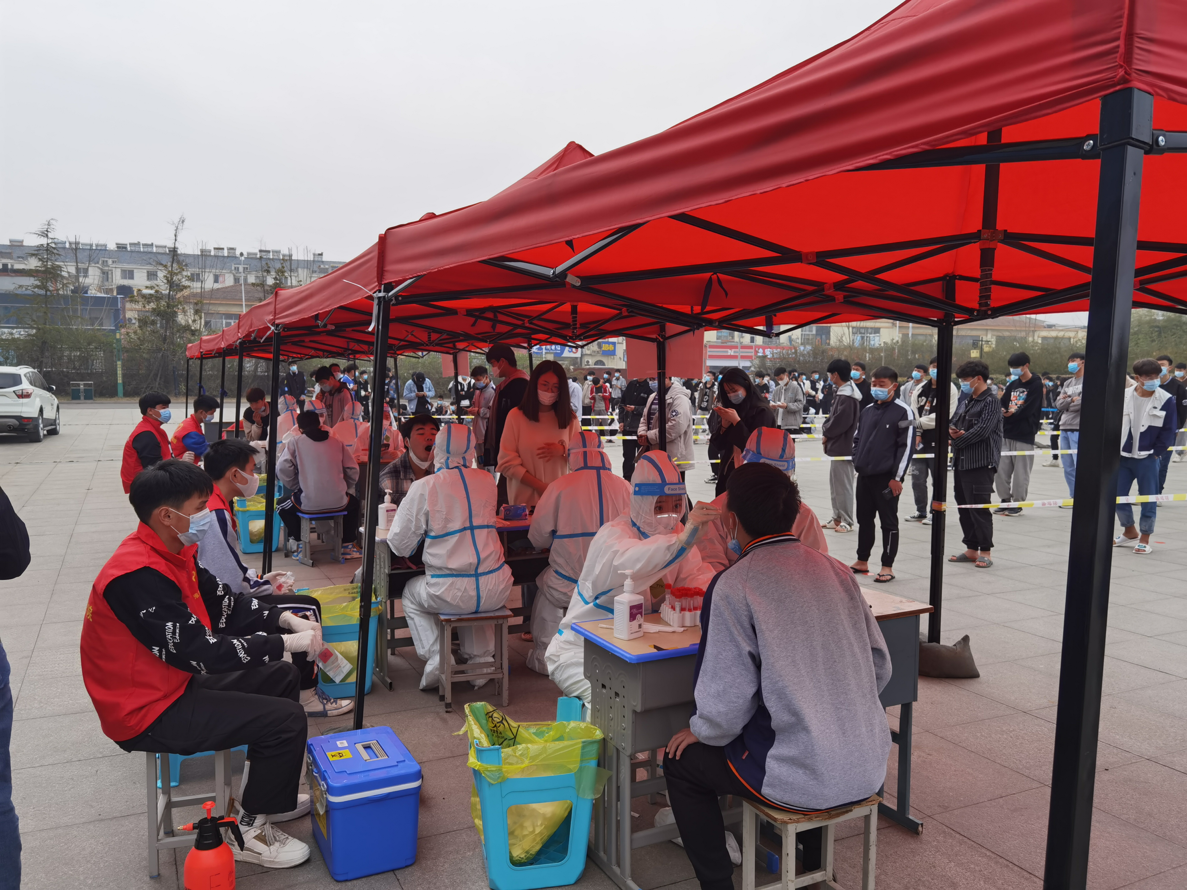 在学院防控组的统一部署下,相关部门协同配合,在学院体育馆前设立核酸检测采样点。师生全程佩戴口罩,间隔一米,有序排队等候,学生志愿者积极引导,全程配合检测。医护人员身穿防护服有序进行验证、采样、分装,耐心细致地为每一名在校师生进行核酸采样,规范操作,无一遗漏。圆满完成在校师生、安保人员、后勤人员等1000余人的三轮核酸检测工作。
