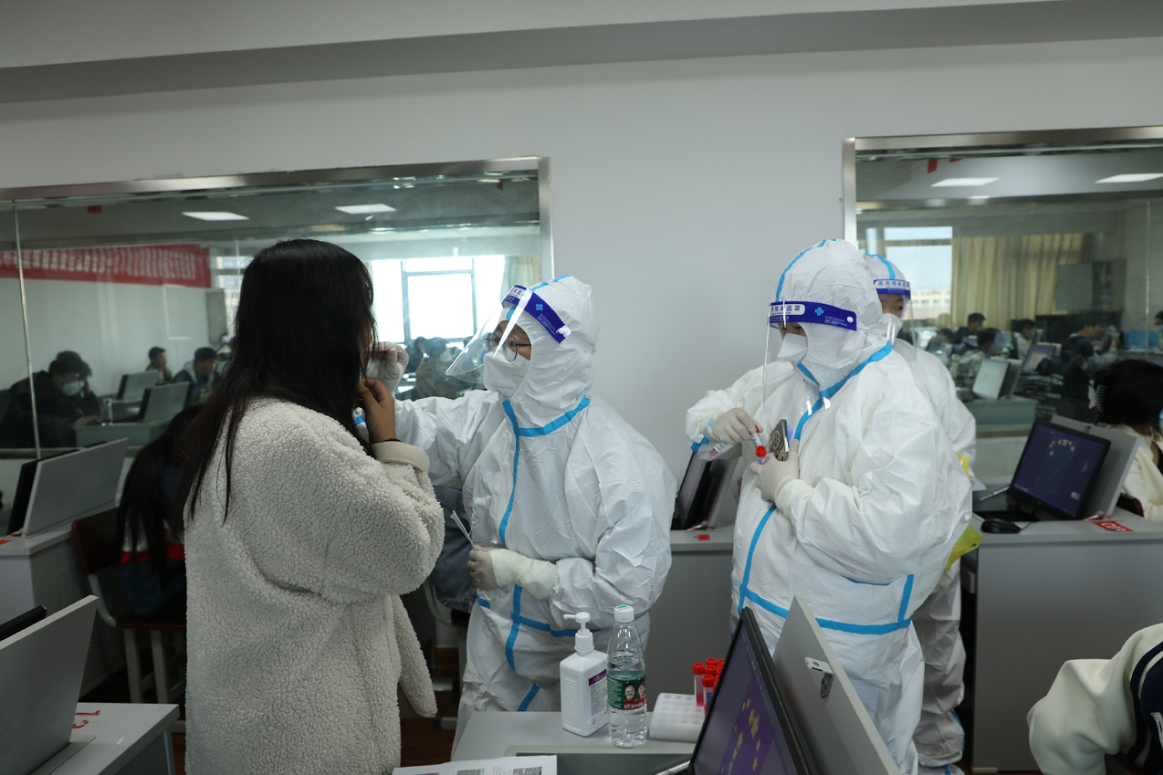 本次演练假设我院“一周双检”的全员核酸检测有一试管出现初筛阳性人员情况的处置。接到开发区政社办关于学院疫情核酸检测异常情况通知后,我院立即启动了突发新冠肺炎疫情应急响应,各应急处置小组立即按照程序迅速开展综合协调、校园封控、人员流调、数据摸排、后勤保障、核酸检测、心理辅导、教育教学、宣传引导等各项工作。