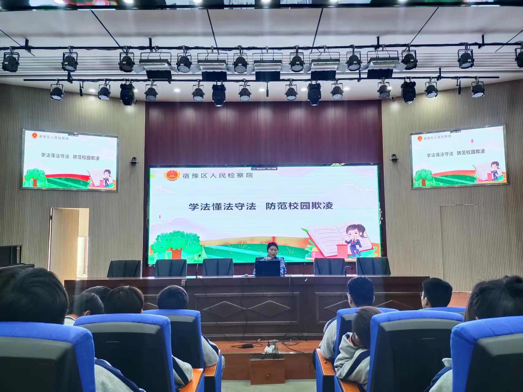 为有效预防青少年违法犯罪及校园欺凌事件的发生,进一步加强我院学生的道德建设和法治教育,促进青少年健康成长,4月20日下午,宿豫区检察院第四监察部主任江婷走进我院,为全体学生开展“预防青少年违法犯罪及校园欺凌”法治教育专题讲座。讲座采用线上线下相结合的形式,全院以班级为单位组织听讲。
