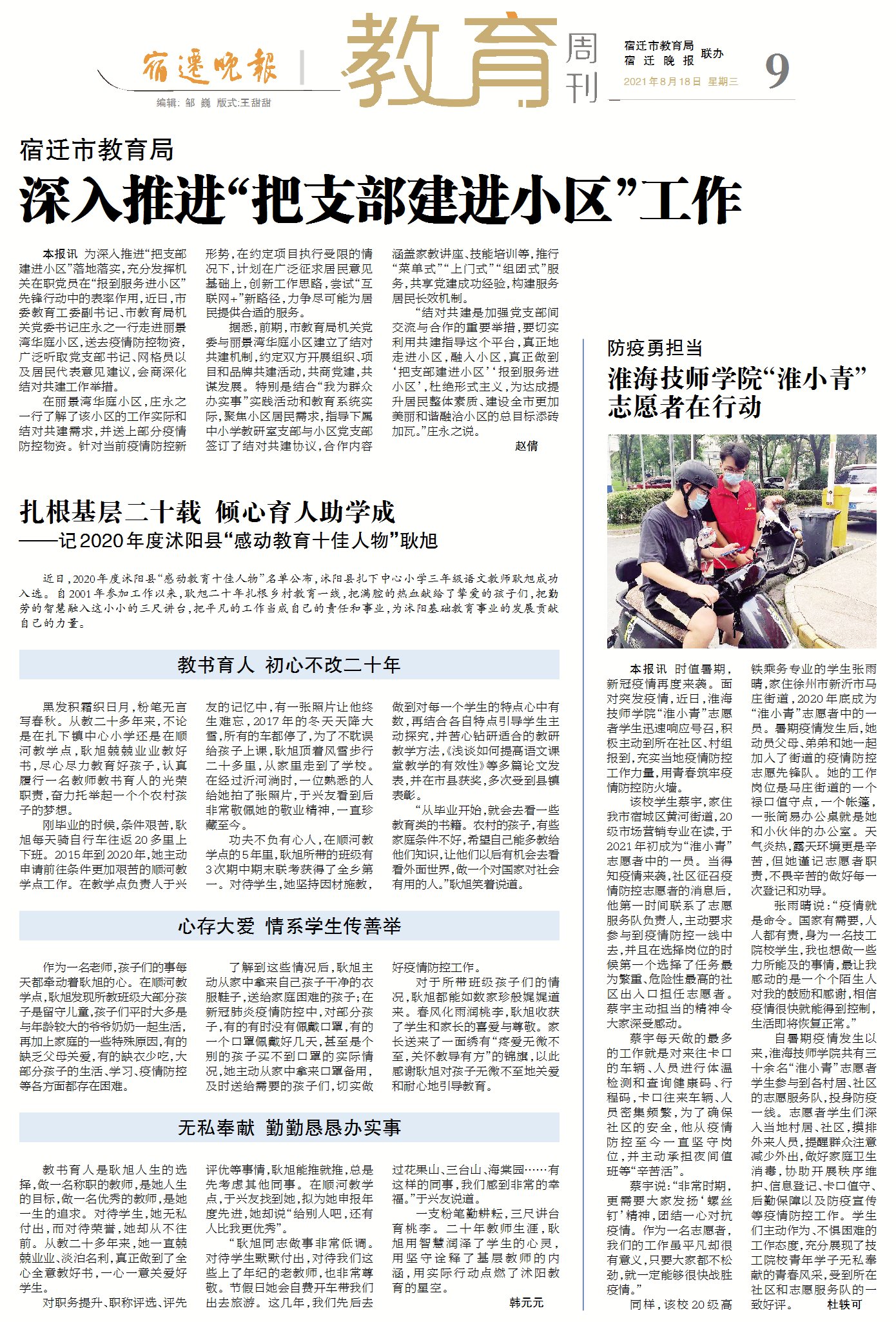 宿迁晚报:防疫勇担当 淮海技师学院“淮小青”志愿者在行动