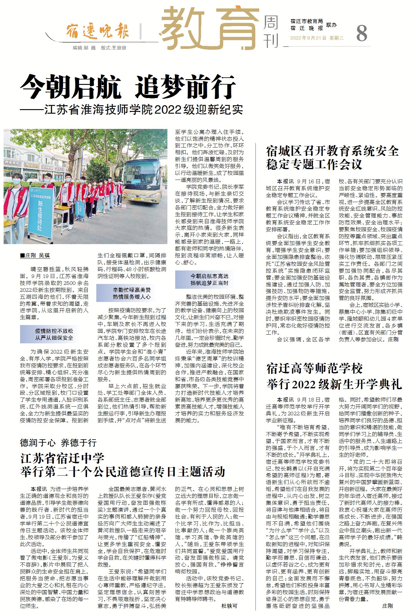 宿迁晚报:江苏省淮海技师学院2022级迎新纪实