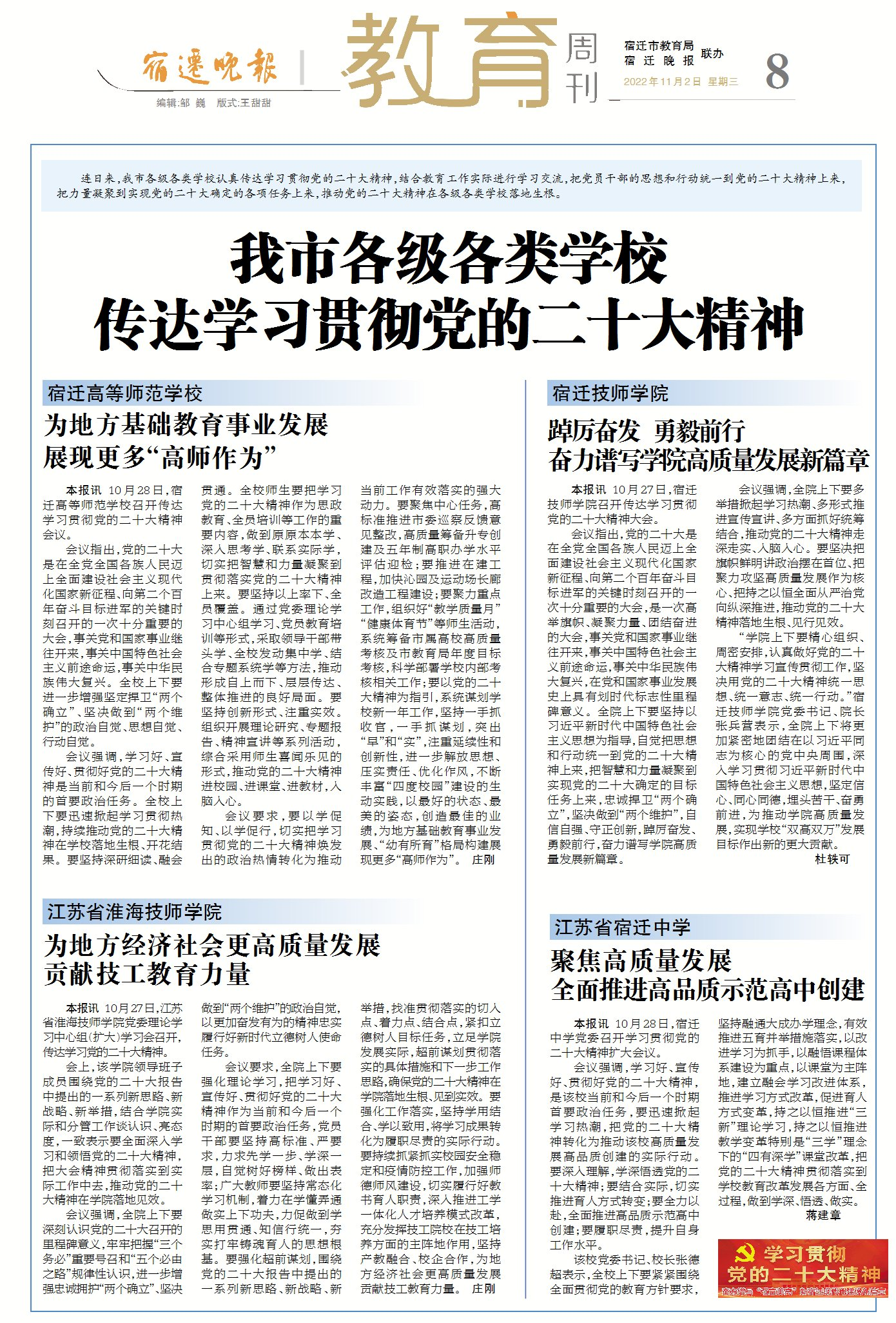 宿迁日报:学习贯彻党的二十大精神