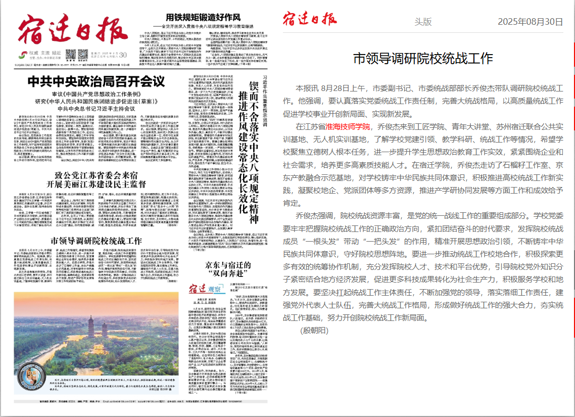 宿迁日报:市领导调研院校统战工作