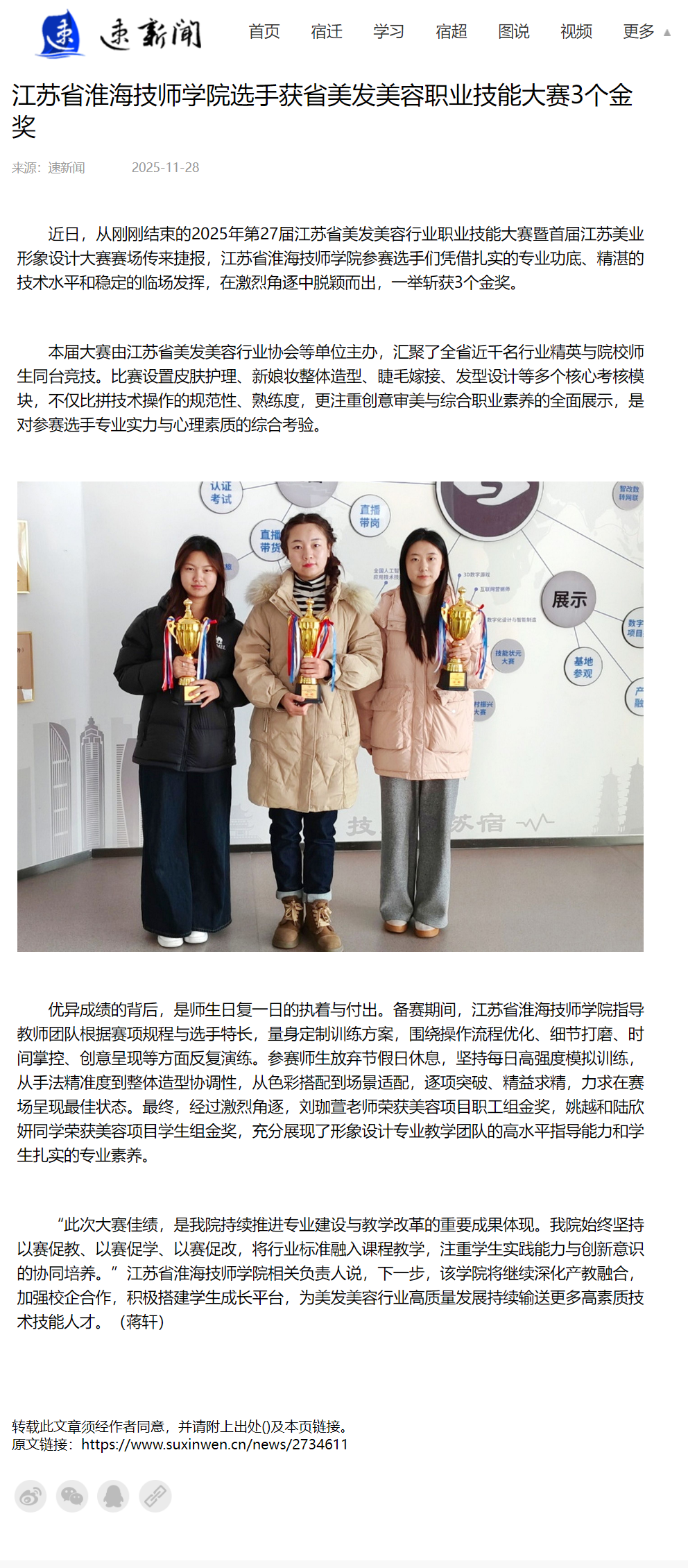 速新闻:江苏省淮海技师学院选手获省美发美容职业技能大赛3个金奖