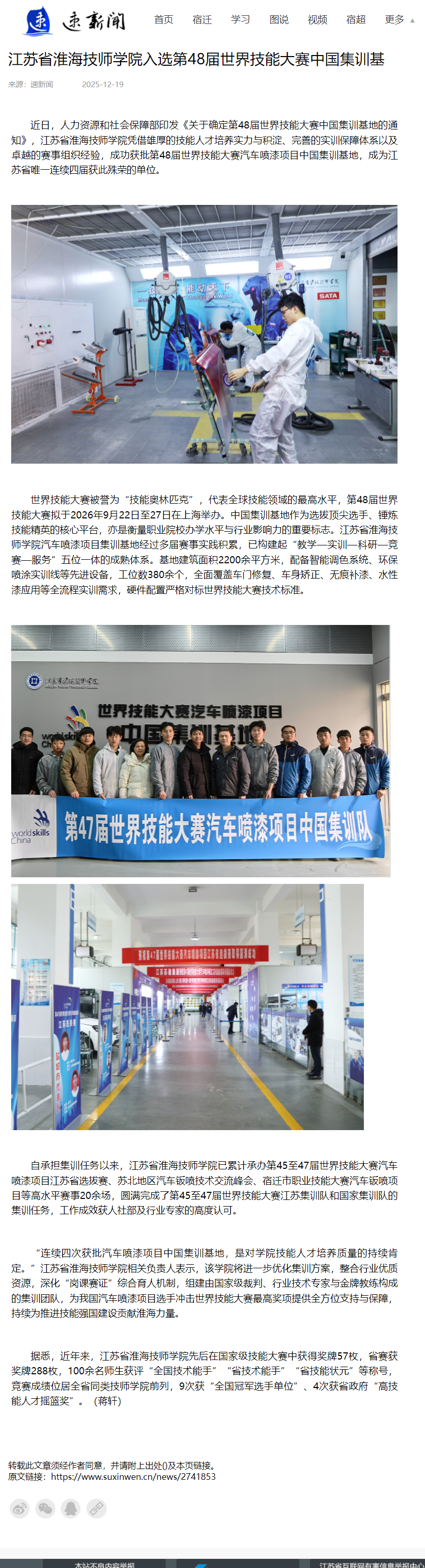 速新闻:江苏省淮海技师学院入选第48届世界技能大赛中国集训基地