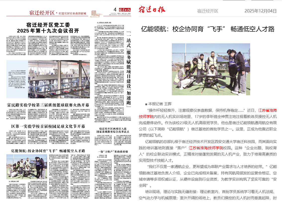 宿迁日报:亿能领航:校企协同育“飞手” 畅通低空人才路