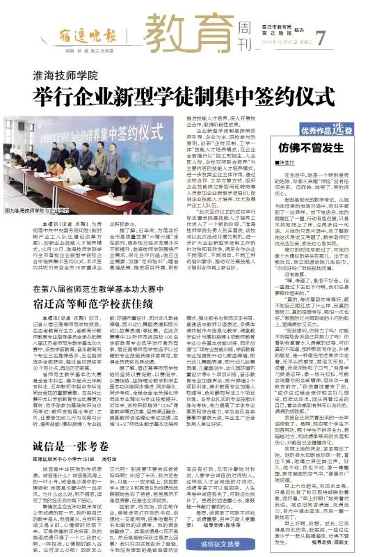 宿迁晚报:淮海技师学院举行企业新型学徒制集中签约仪式