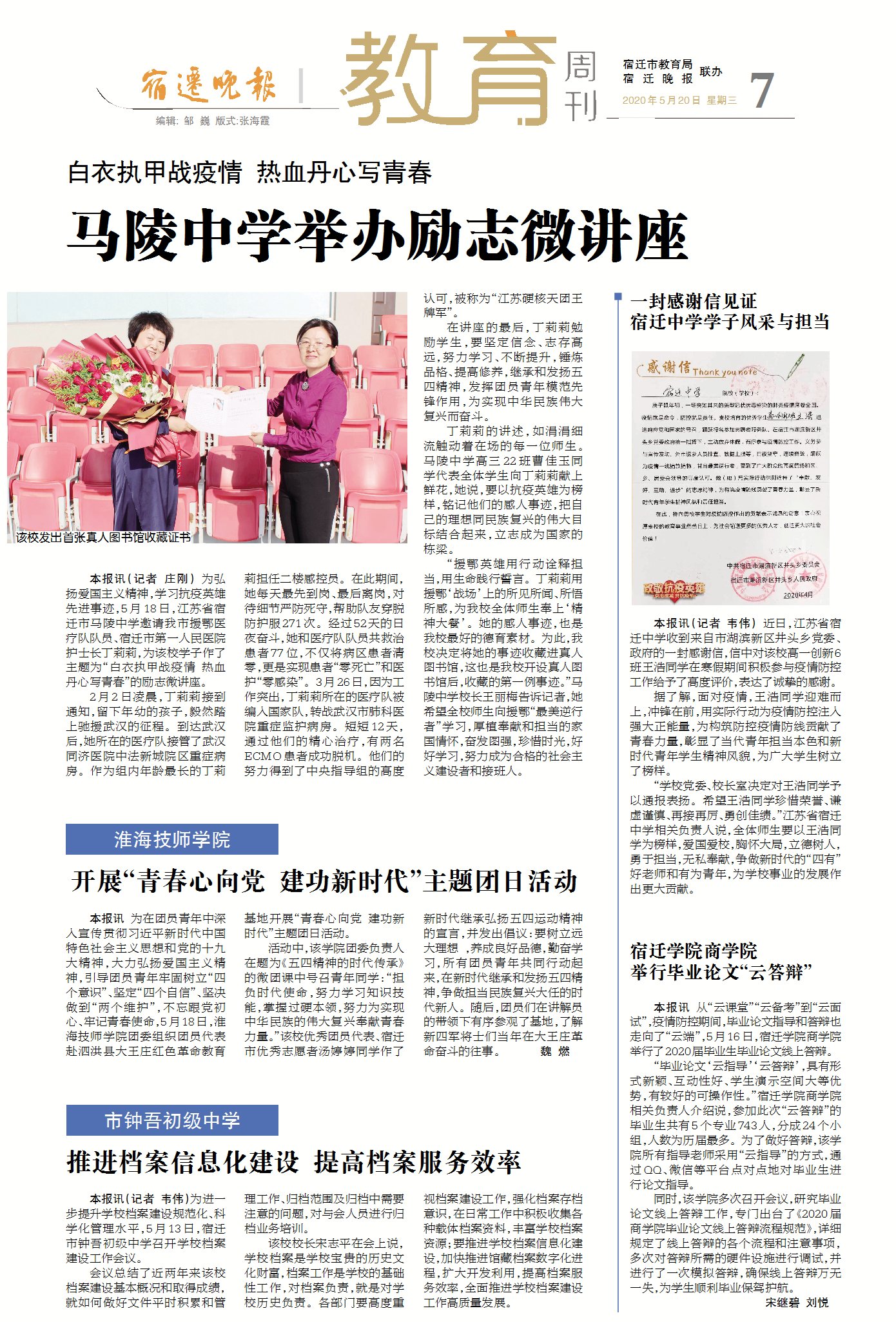 宿迁日报:淮海技师学院团委获评2019年度省五四红旗团委