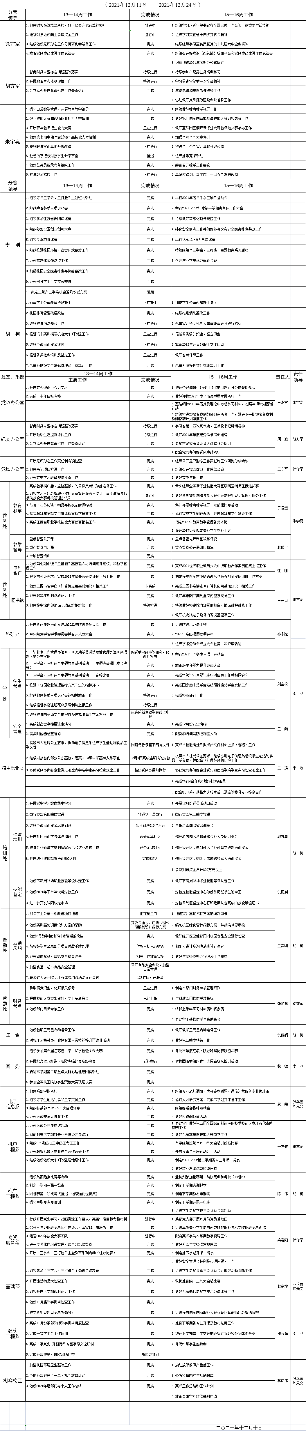 2021-2022学年度第一学期第15—16周重点工作安排