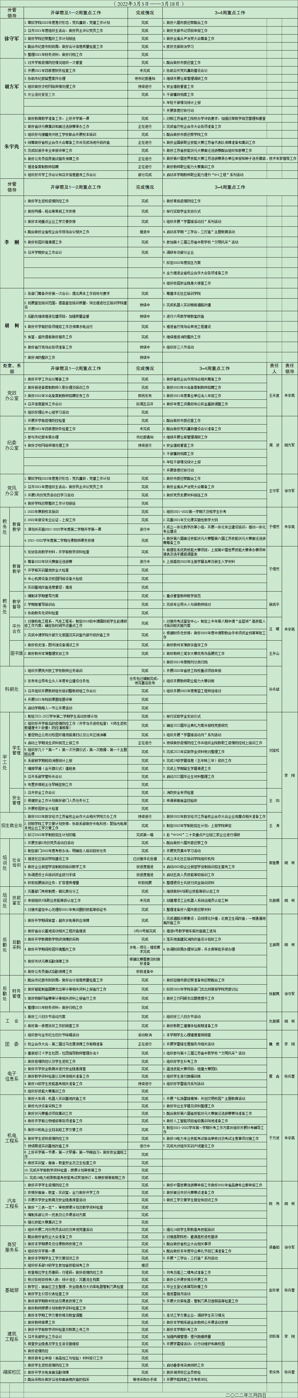 2021-2022学年度第二学期3—4周重点工作安排