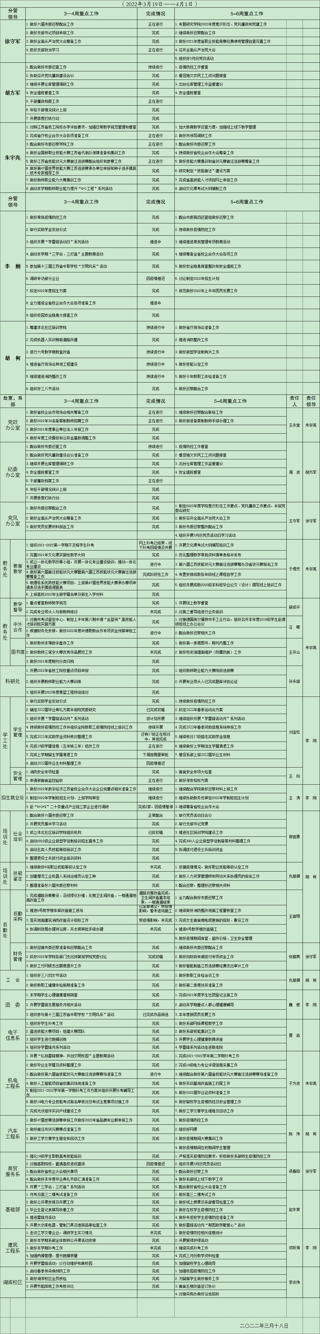 2021-2022学年度第二学期3—4周重点工作安排