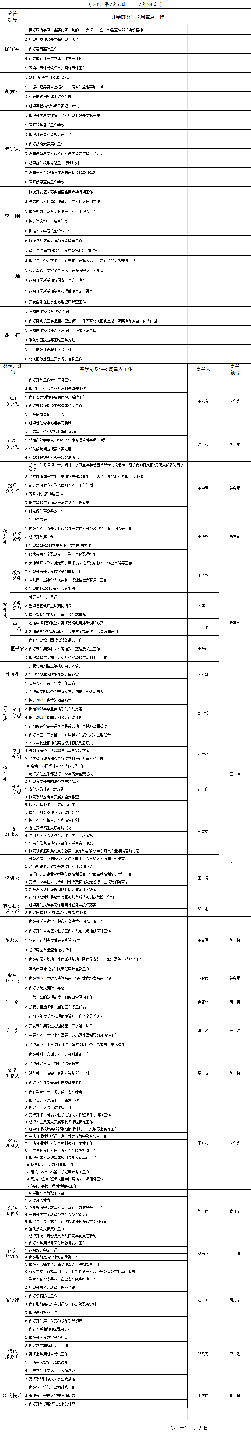 2022-2023学年度第二学期开学前及1—2重点工作安排