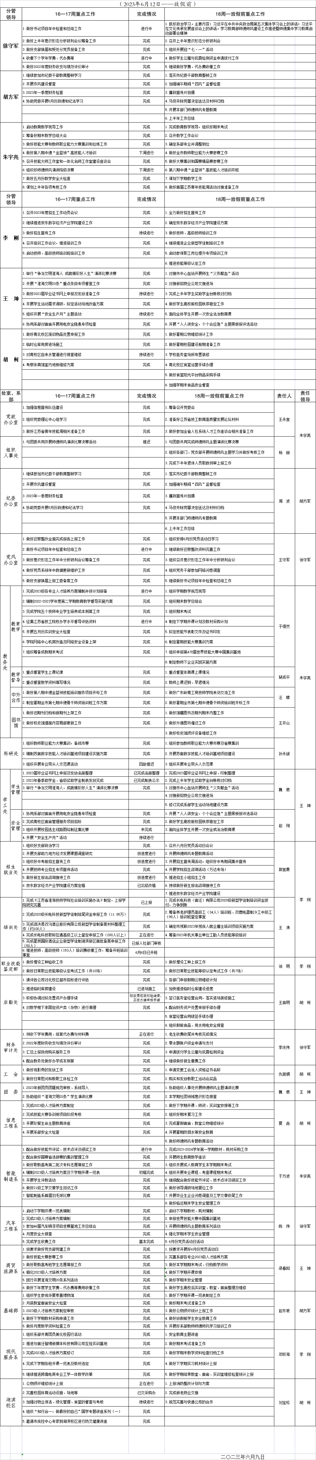 2022-2023学年度第二学期16—17重点工作安排