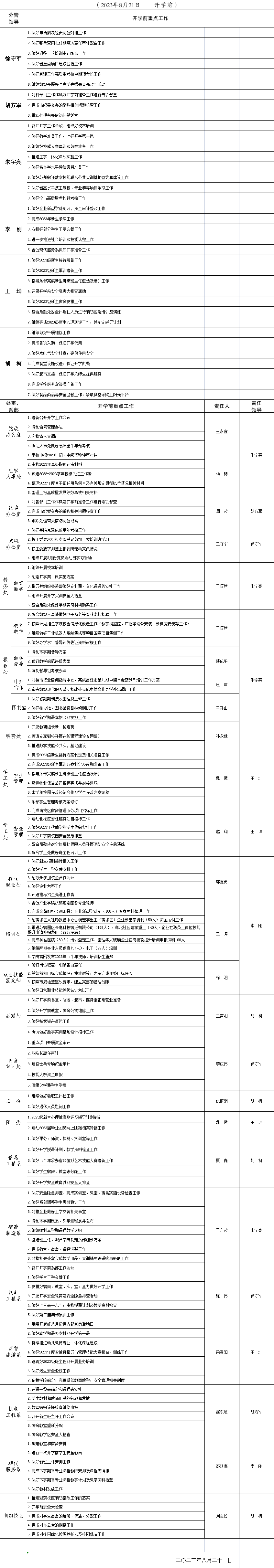2023-2024学年度第一学期开学前重点工作安排