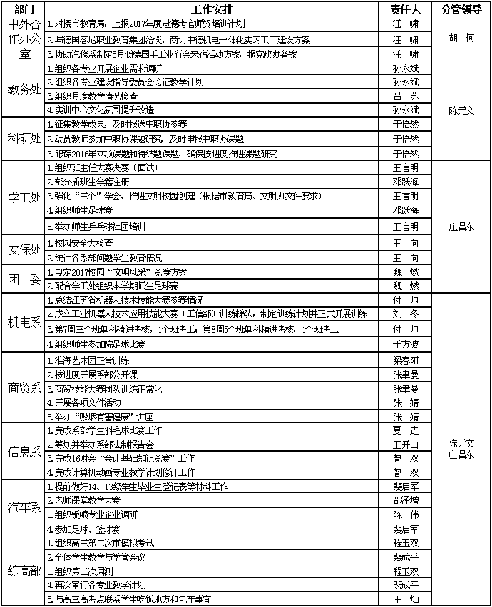 2016-2017学年度第二学期第9、10周重点工作安排表