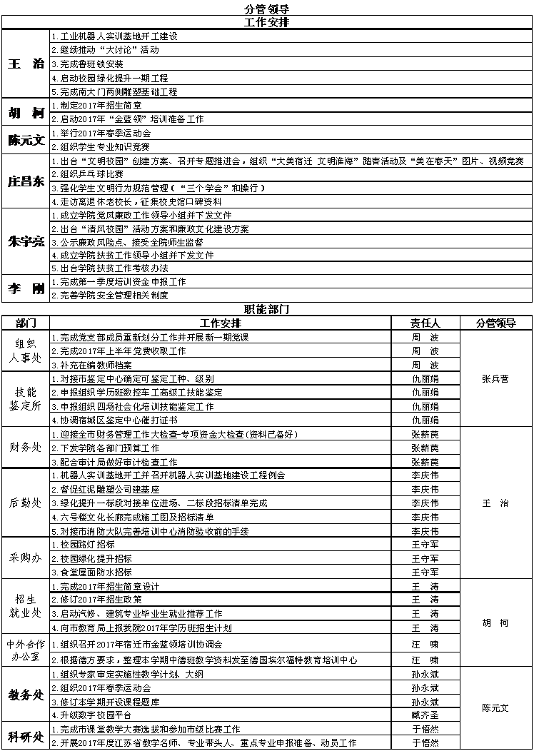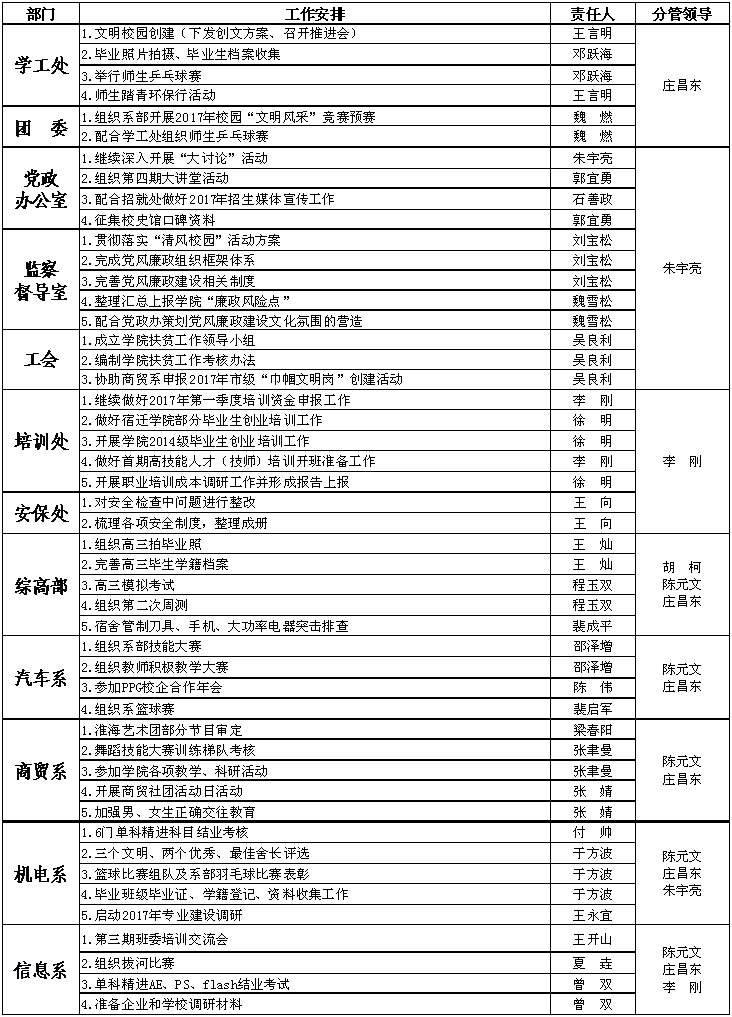 2016-2017学年度第二学期第11、12周重点工作安排表