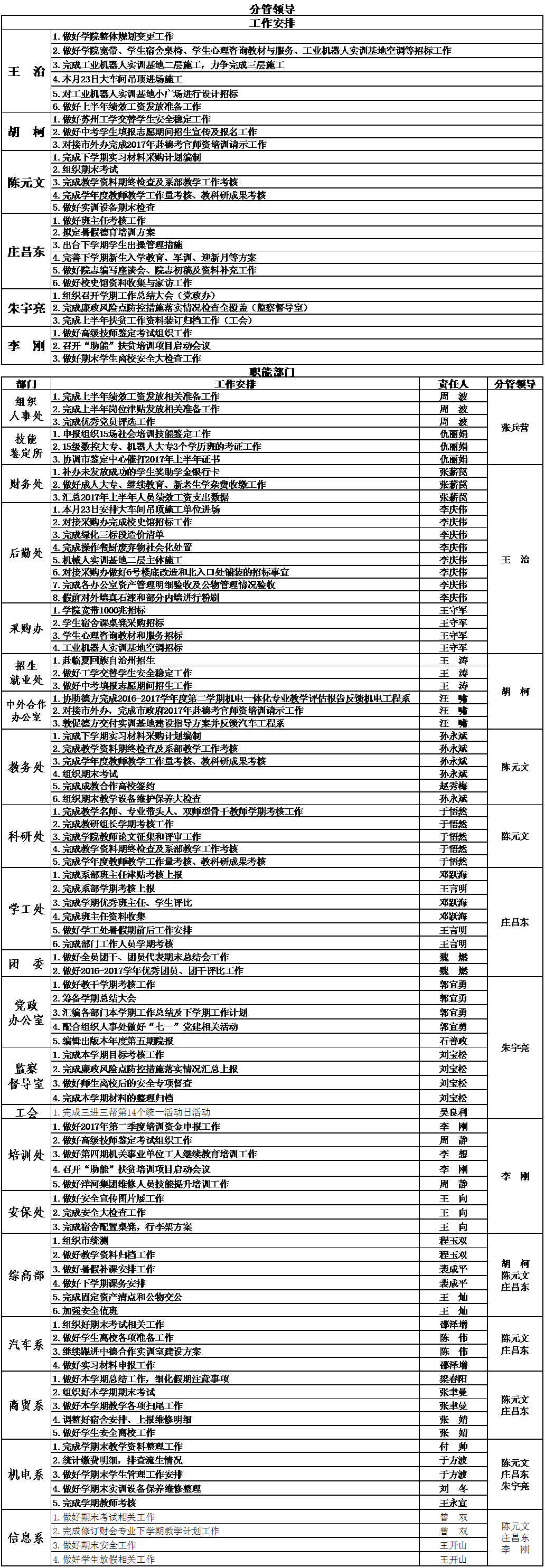 2016-2017学年度第二学期第17、18周重点工作安排表