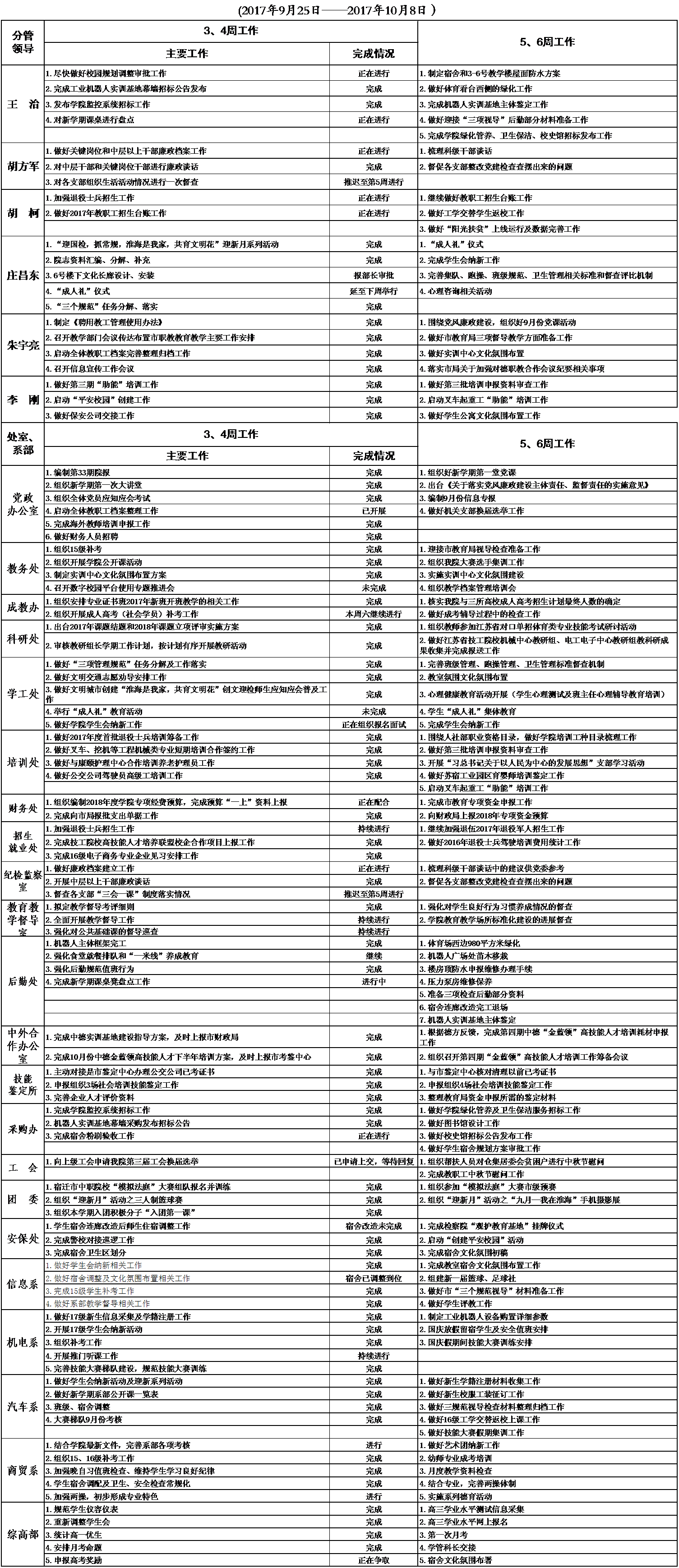 2017-2018学年度第一学期第5、6周重点工作安排表