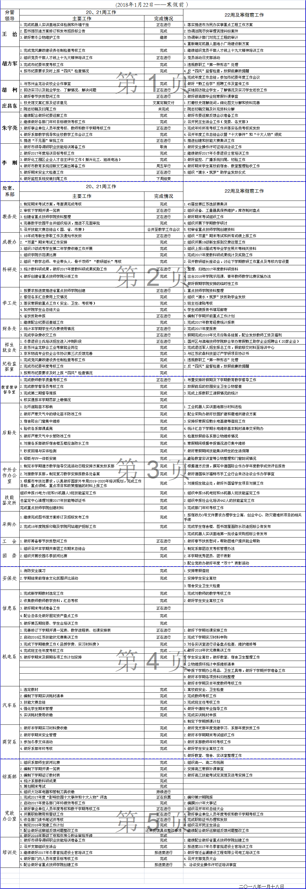 2017-2018学年度第一学期第20、21周重点工作安排表
