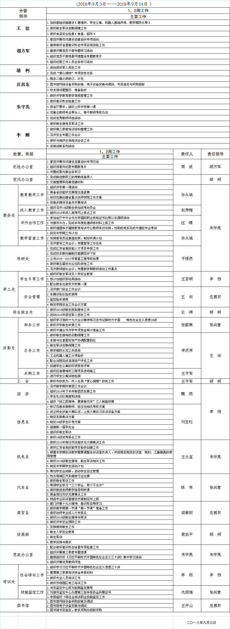 2018-2019学年度第一学期第1、2周重点工作安排表