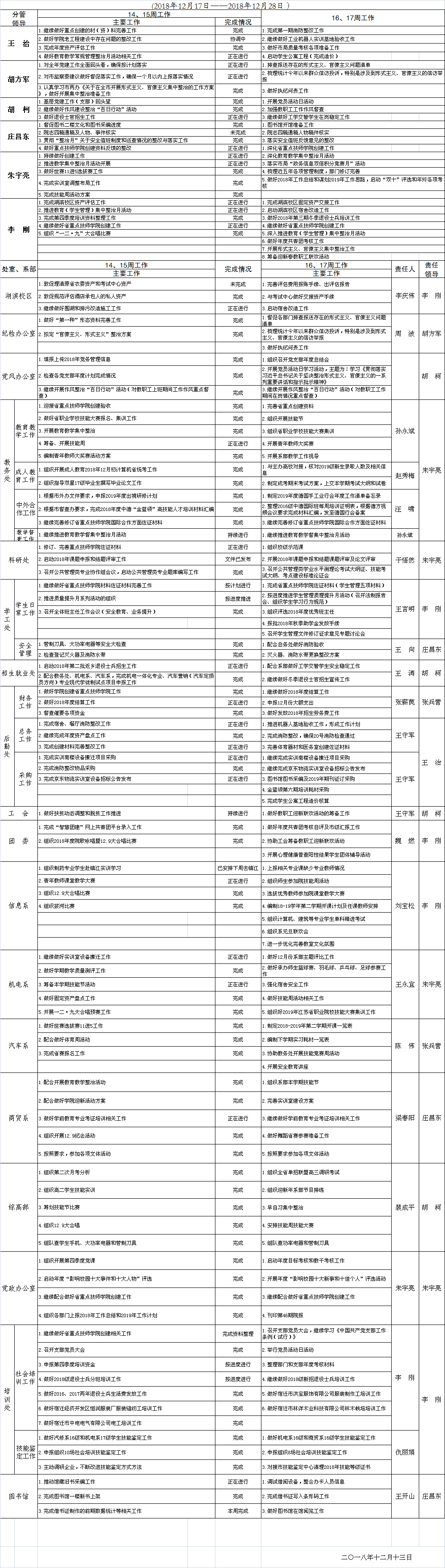 2018-2019学年度第一学期第14、15周重点工作安排表