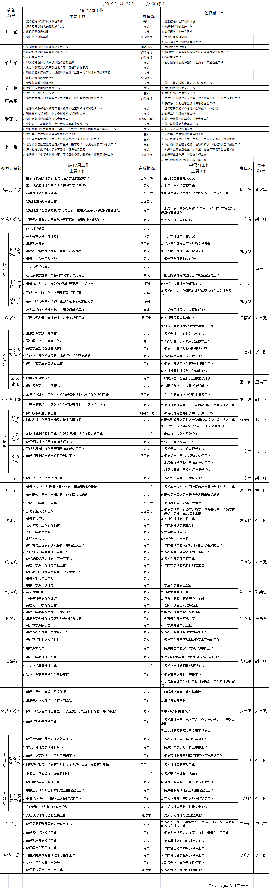 2018-2019学年度第二学期暑假前重点工作安排表