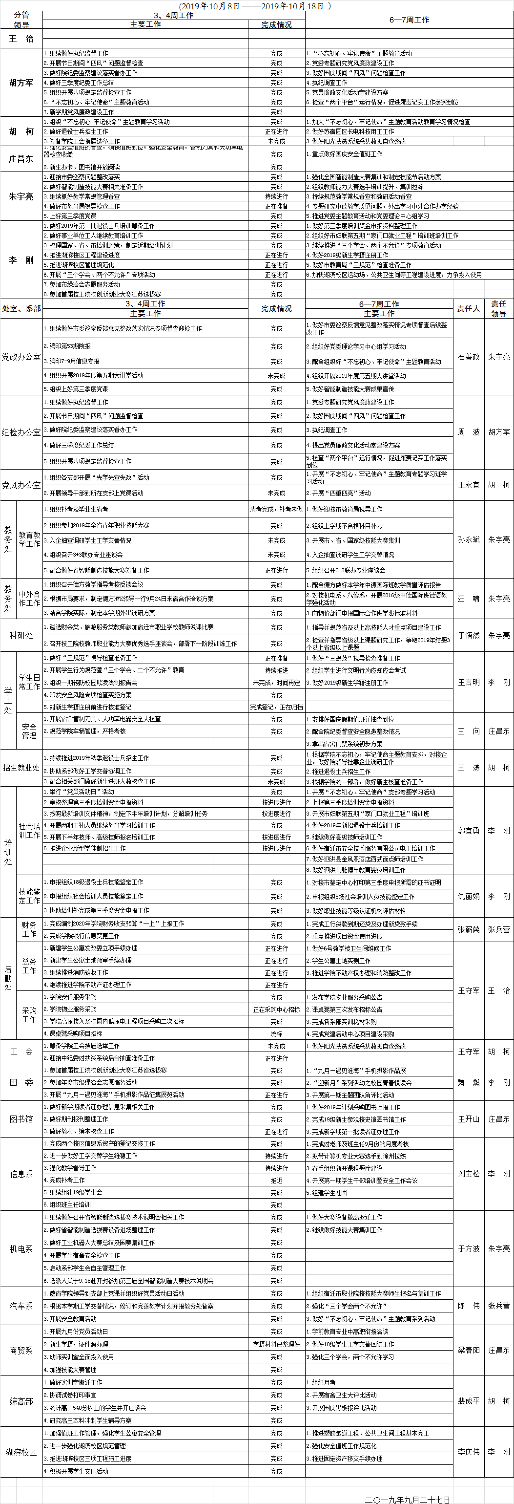 2019-2020学年度第一学期第6—7周重点工作安排表