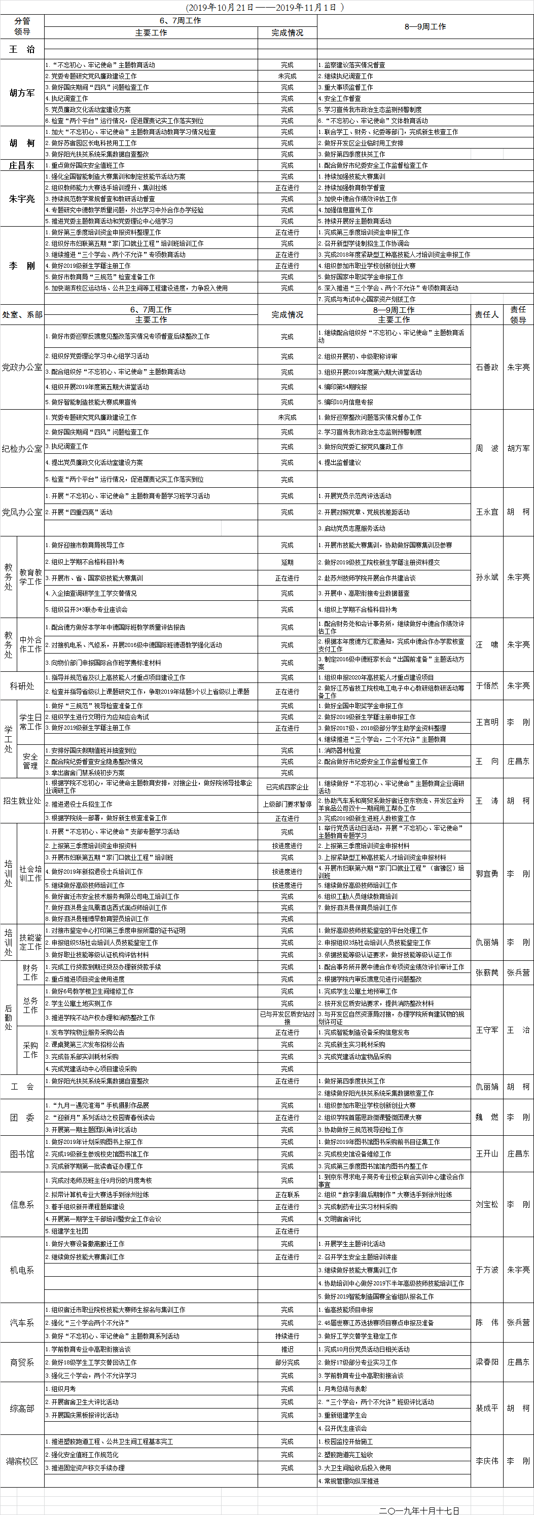 2019-2020学年度第一学期第6—7周重点工作安排表