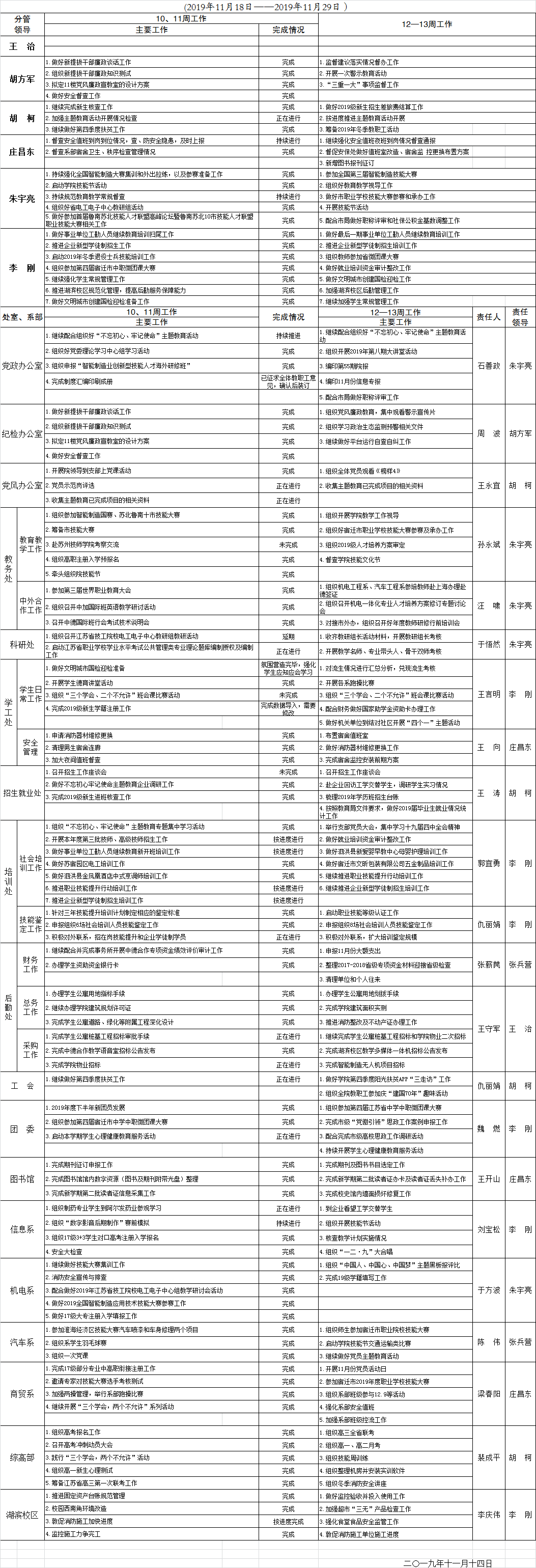 2019-2020学年度第一学期第10—11周重点工作安排表