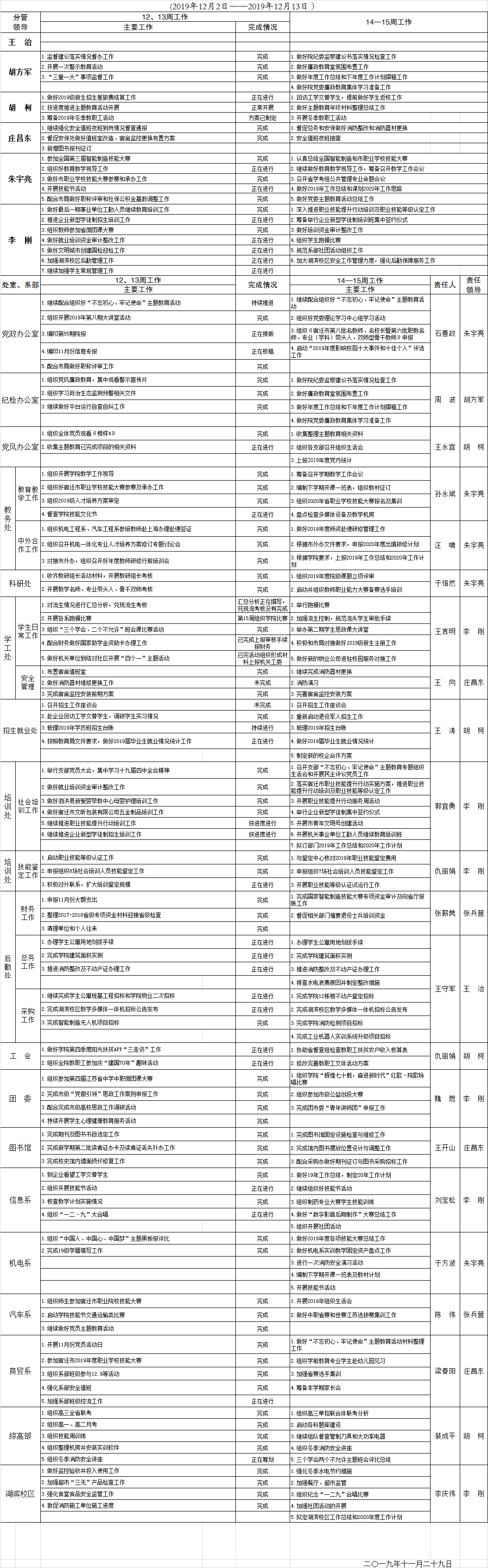 2019-2020学年度第一学期第12—13周重点工作安排表