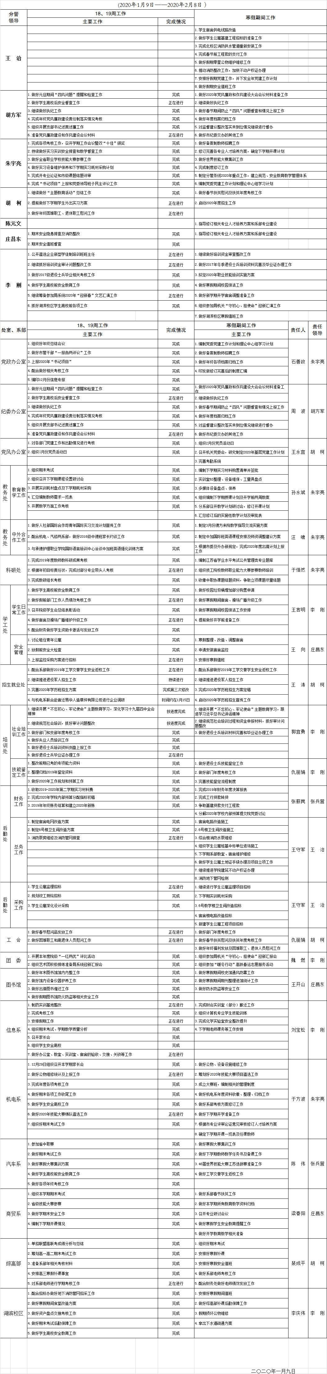 2019-2020学年度第一学期寒假期间重点工作安排表