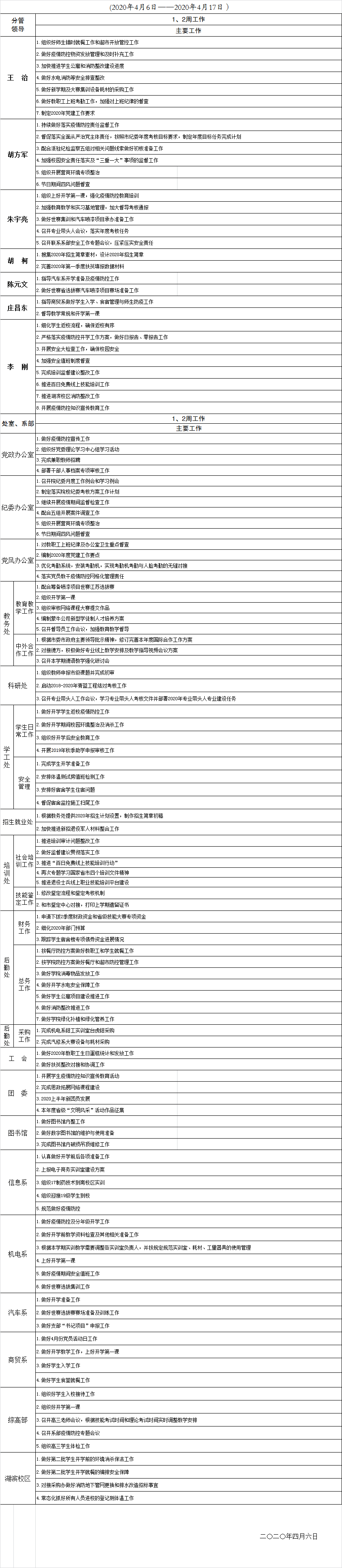 2019-2020学年度第一学期寒假期间重点工作安排表