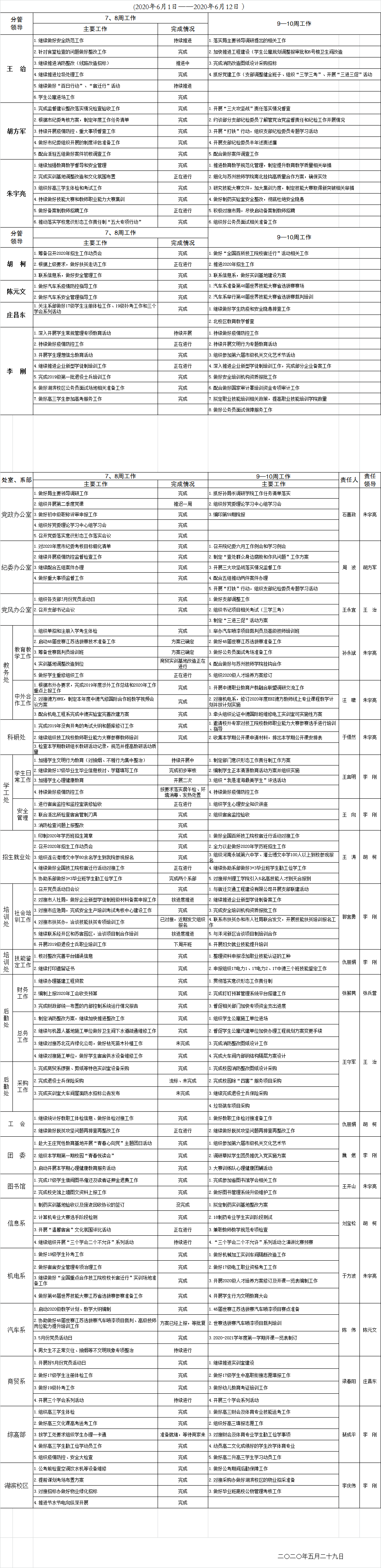 2019-2020学年度第二学期第11—12周重点工作安排