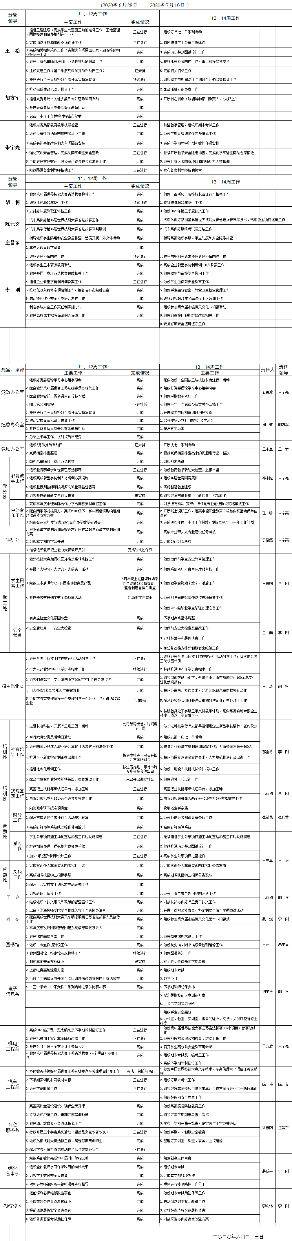 2019-2020学年度第二学期第11—12周重点工作安排