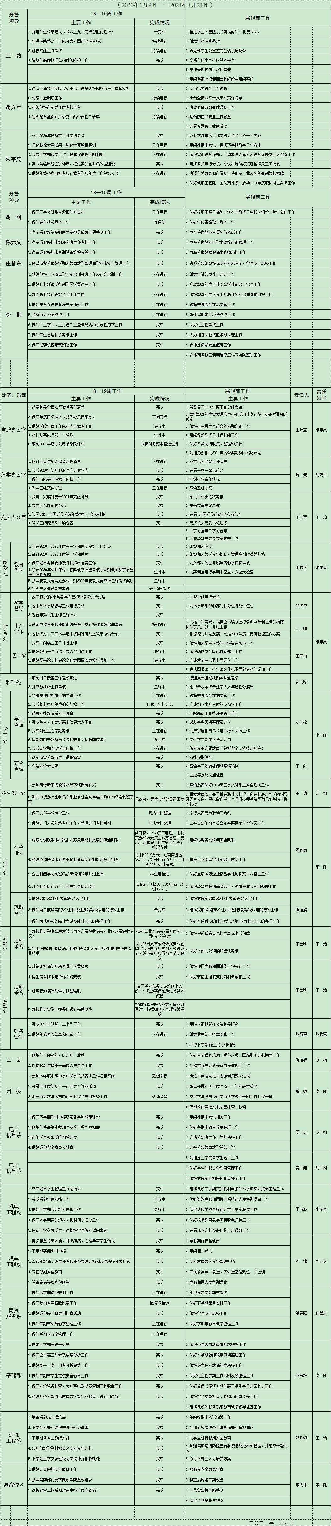 2020-2021学年度第一学期第18—19周重点工作安排