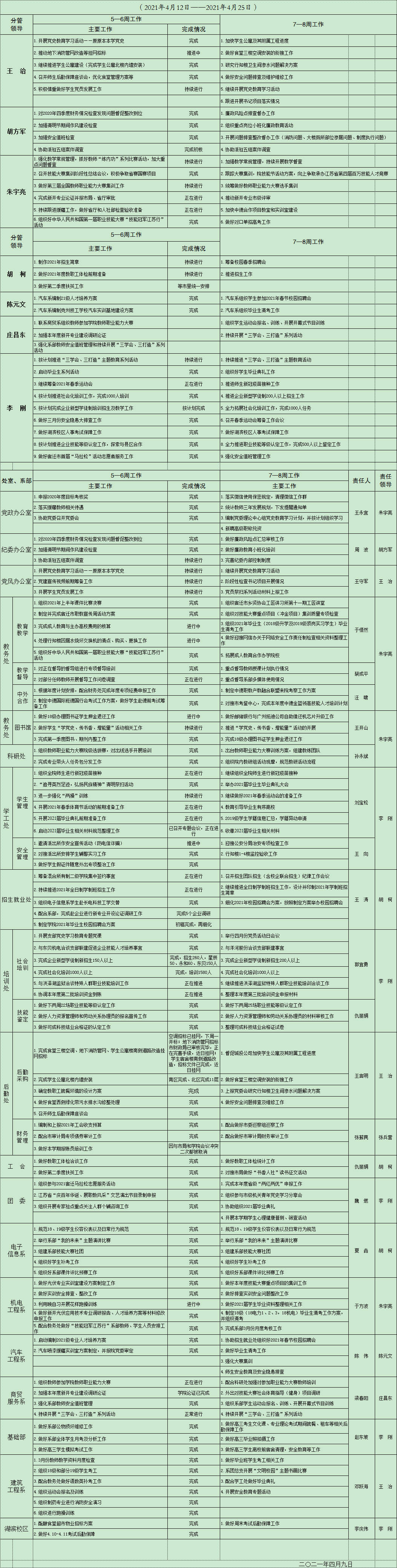 2020-2021学年度第二学期5—6重点工作安排
