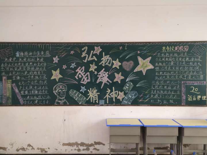 为了推进校园文明建设和文化建设,丰富师生文化内涵,今日,建筑工程系举行了以“学雷锋精神,做礼仪少年”为主题黑板报评比活动。各班级在班主任的带领下积极准备、认真设计,所展示的板报内容紧贴主题、创意新颖、版面布局合理。