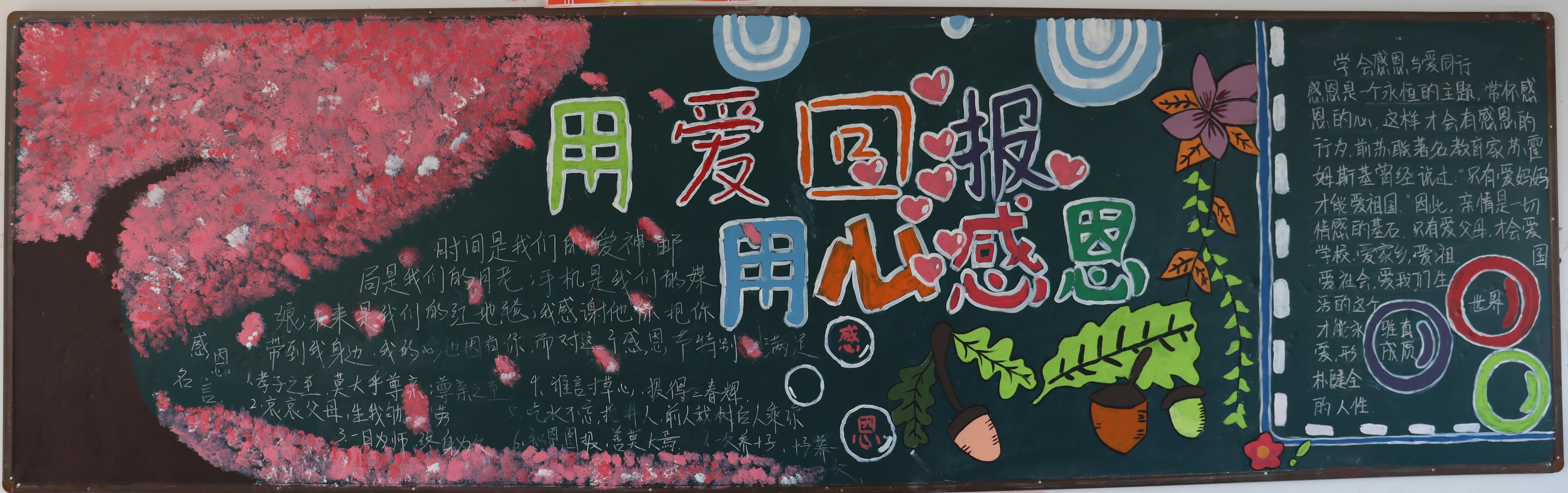 为了弘扬中华民族的传统美德,提升学生的思想素质,让学生学会感恩,11月24日,建筑工程系开展了“学会感恩,与爱同行”主题黑板报评比活动。
