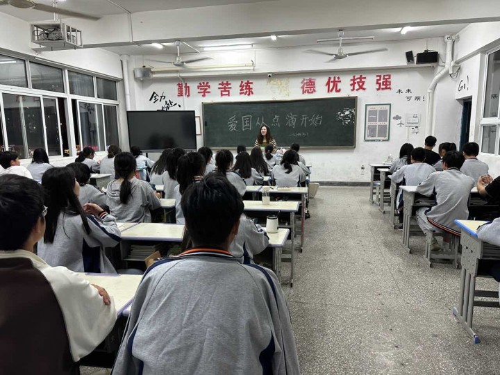 在主题班会上,各班班主任向学生们讲述了新中国成立以来取得的举世瞩目成绩,使学生了解祖国发展历史,激发学生的爱国热情,培养学生的责任意识,使学生懂得如今的幸福生活来之不易,要加倍珍惜,要求大家要从点滴的小事做起,把爱国之情转化为学习的动力。
