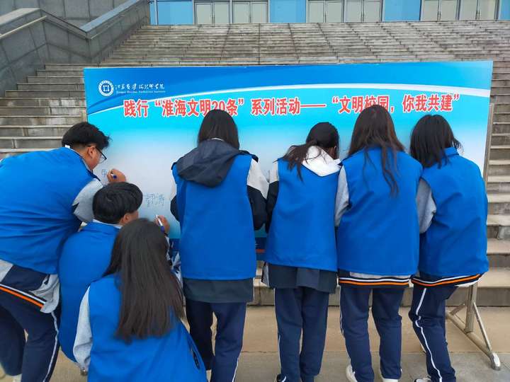 开展本次签名活动是深入学习实践“淮海文明20条”的具体举措,旨在提升学生素质,着力塑造学生讲究礼仪、遵守秩序的良好形象,为营造和谐文明校园起到了积极的促进作用。