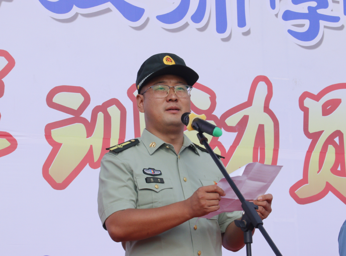 张兵营宣布军训开始,并要求各相关部门和责任人统一思想,密切协作,忠于职守,严格管理,落实防控措施,确保人人安全,圆满完成军训任务。