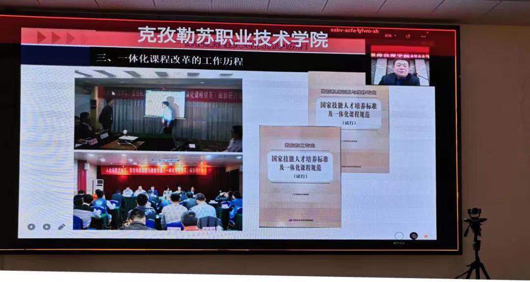 本次校本培训是两校联建以来开展的第二次联合培训,也是根据克州方面要求,精心准备的专题师资培训课。为了保证培训同步顺利进行,两校做了大量前期准备工作,方案会商、设备调试、人员通知、主持沟通,不一而足。尤其是克服了江苏、新疆两地两个多小时的时差,特意选择下午三点开课。为保证培训质量,我院特地邀请技工教育领域知名专家到淮海现场授课,克州方面通过远程视频同步收看。两校的校长、分管教学校长,各处室、系部负责人,全体教师全程参加培训,仔细聆听,认真记录。本次培训课题为《一体化课程改革的探索与实践》,整场近三个小时的培训,专家授课高屋建瓴、深入浅出,让全体参培人员获益匪浅。