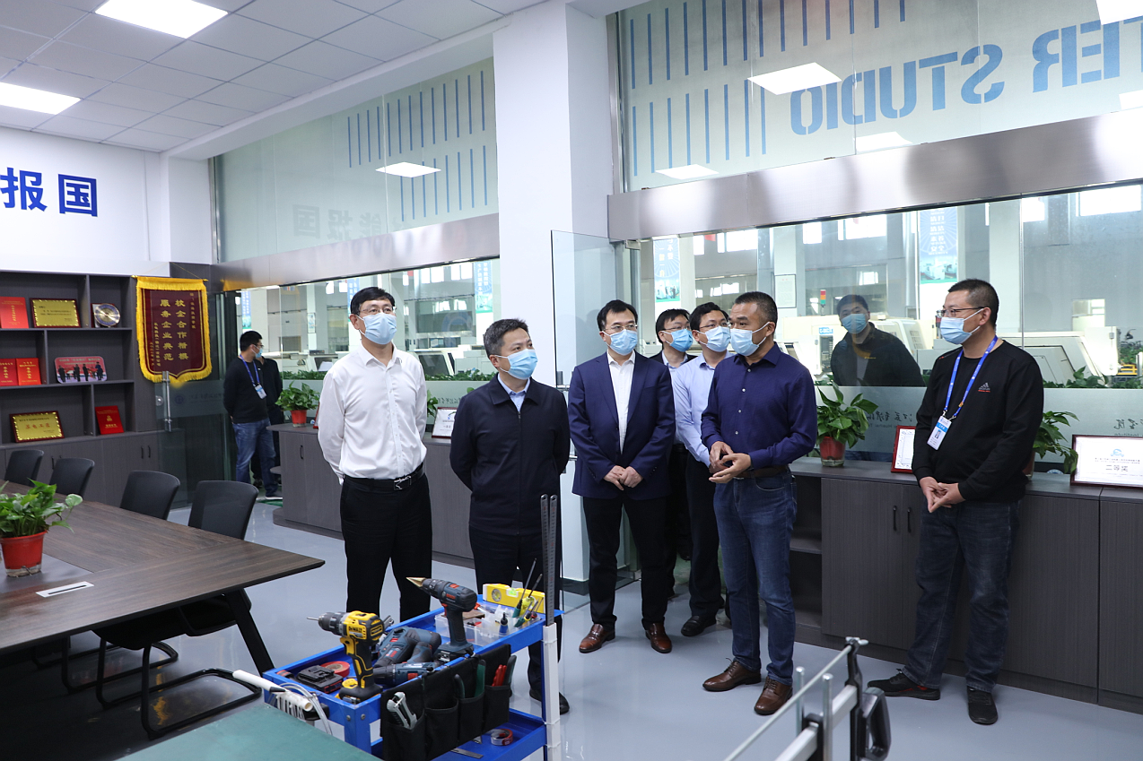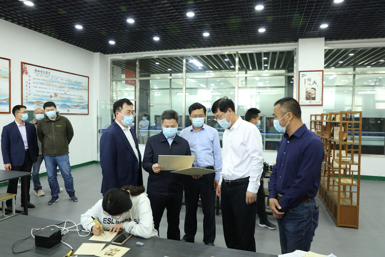 仲小兵一行先后参观了学院高铁乘务实训中心、京东电商产业学院、酿酒工作室、天岗锣鼓工作室、烙书烙画工作室、泥塑工作室、剪纸艺术工作室、数控加工实训中心、机械加工实训中心、国家级技能大师工作室、省级技能大师工作室、网易传媒产业学院、中德学院、苏驰汽车产业学院、汽车喷漆国赛集训基地、光伏产业学院、智能制造实训基地等地,深入了解学院“十四五”规划发展、实训基地建设、技能大赛、培训鉴定、产业学院建设及疫情防控等方面情况。