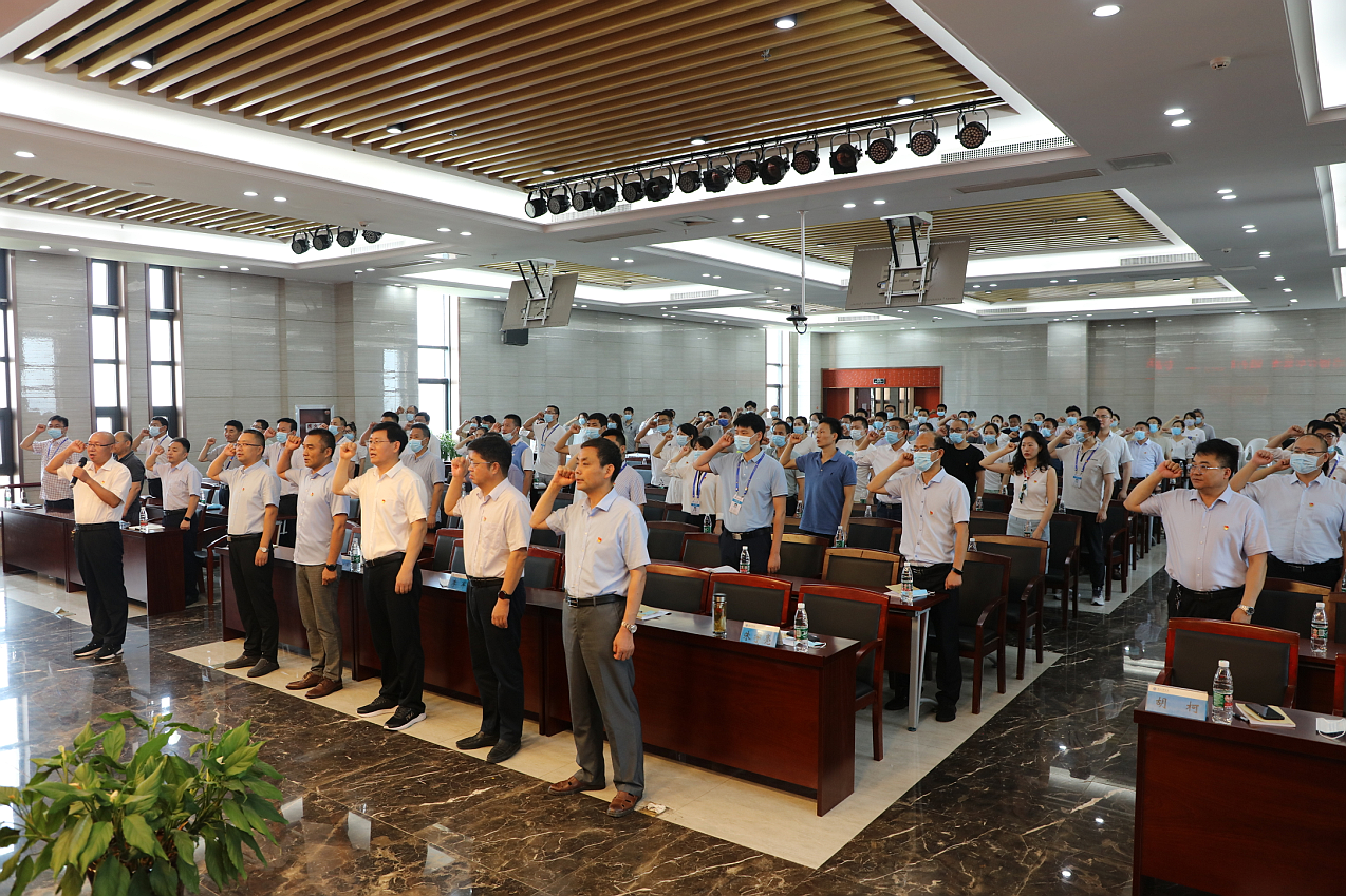 开课前,学院党委副书记徐守军带领全体同志重温入党誓词,全体同志举起右手、握紧拳头,面向党旗庄严宣誓,重温了入党宣誓时的庄严承诺。