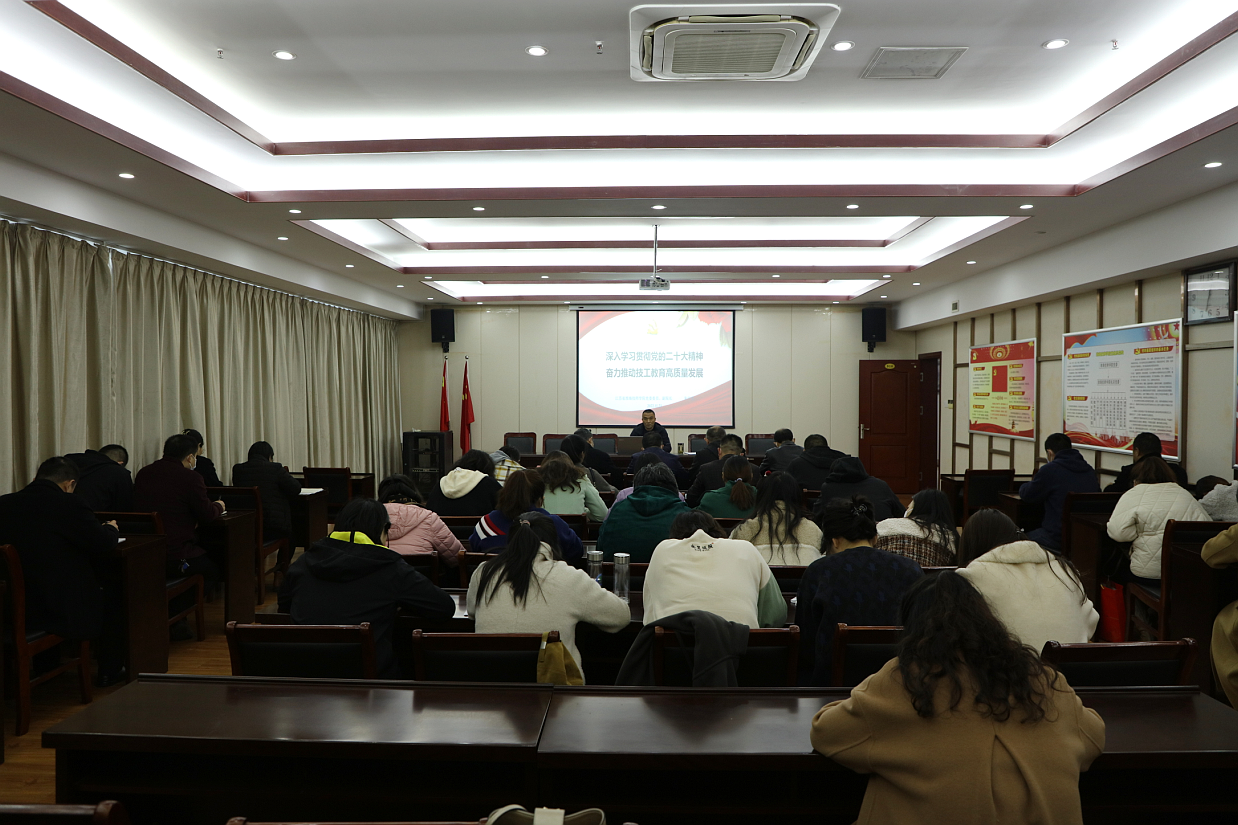 11月21日下午,学院党委委员、副院长朱宇亮以“深入学习贯彻党的二十大精神,奋力推动技工教育高质量发展”为主题为党政办、教务处、科研处和智能制造系等部门全体人员上了一堂精彩的专题党课。