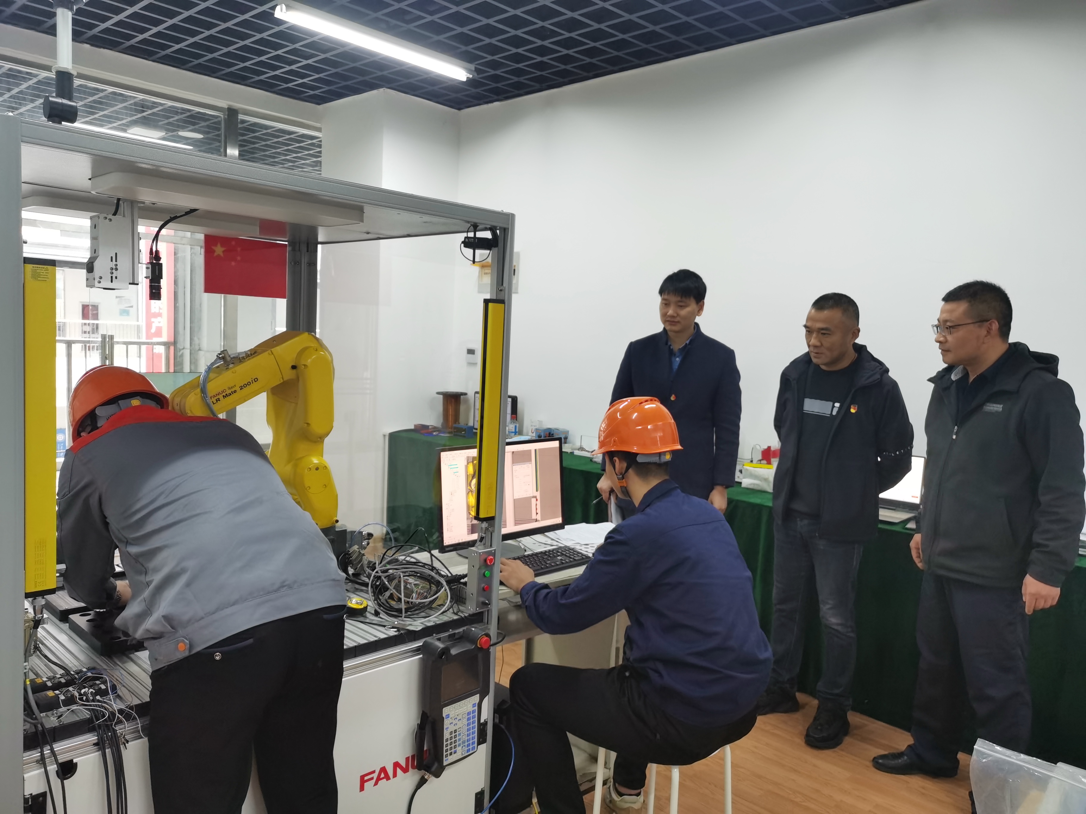 党课之后,朱宇亮又前往机器人实训中心看望慰问全力备战第47届世界技能大赛江苏省选拔赛的选手和指导老师,强调了本次选拔赛的重要性,希望指导教师要科学制定并认真研究训练方案,参赛选手要心无旁骛,刻苦训练。