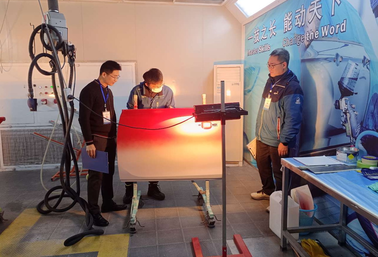 本次竞赛由江苏省人力资源和社会保障厅主办,宿迁市人力资源和社会保障局承办,我院协办。选手们需要在430分钟内分时段完成色觉测试及喷涂操作规范性测试、车门皮双色喷涂和门板修补抛光等三个模块的比拼,通过各赛项完成过程及质量效果综合评定选手汽车喷漆的技术水平。三个模块的比赛题目均参照世界技能大赛,比赛的技术内容、技术标准也完全对接世赛标准。竞赛中,各参赛选手沉着冷静、奋力拼搏,激烈角逐全国选拔赛的参赛资格,充分展现出新时代青年技工的精湛技艺和良好的精神风貌。